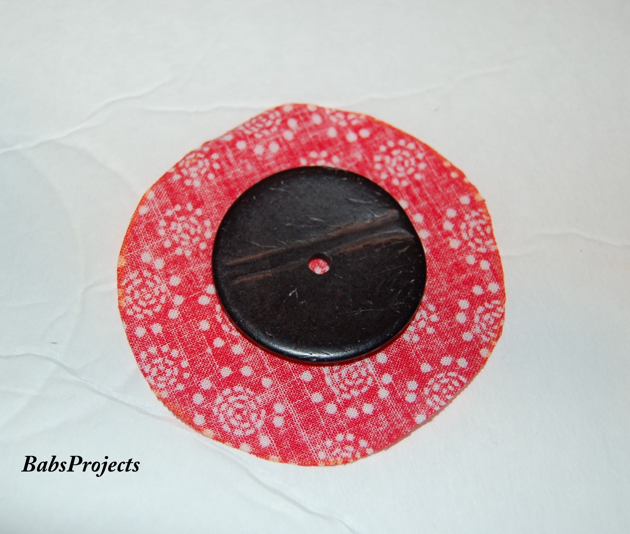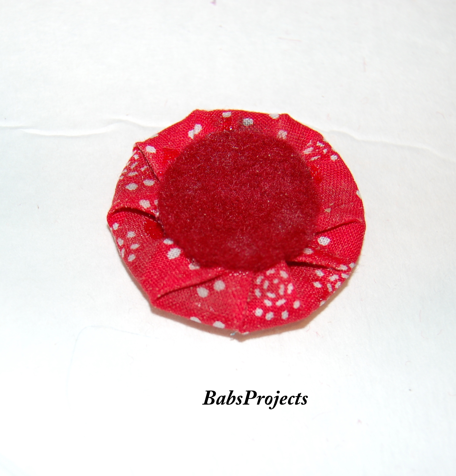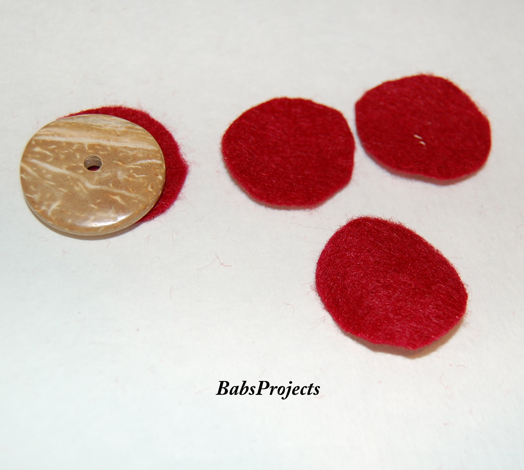 I wanted the the back of the fabric covered beads, to look all neat and nice. So I cut out some 1″ red felt circles to cover them.
