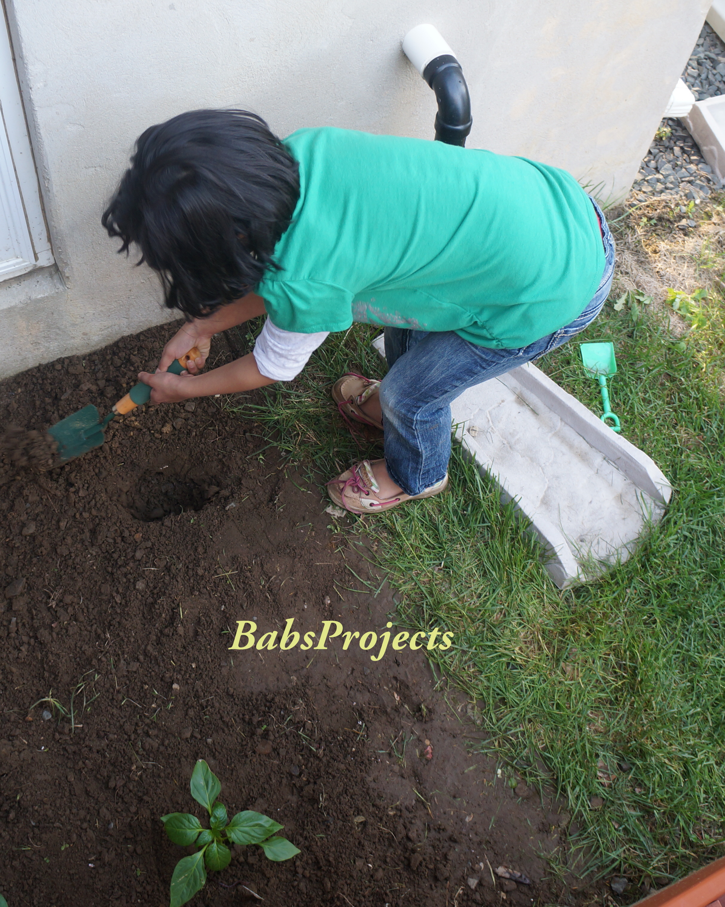 Last week my DH and I we headed over to our local Home Depot and got only five plants. During the weekend he and the girls set out to plant them. He had already prepared a small patch behind our deck.