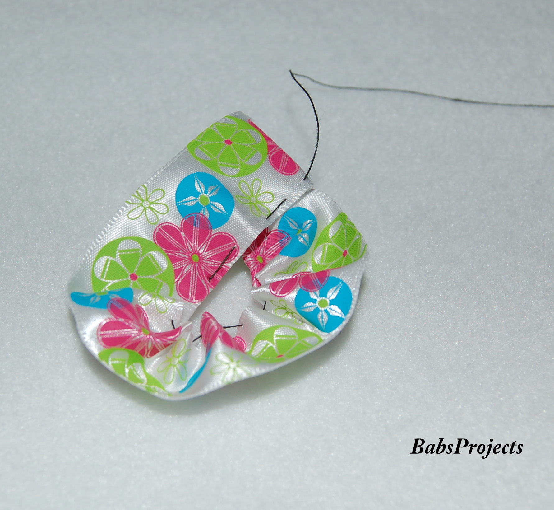 For the purpose of this tutorial I used black thread but if you are making these earrings then do remember to use matching threads. I sewed a running stitched along one of the edges of the ribbon.