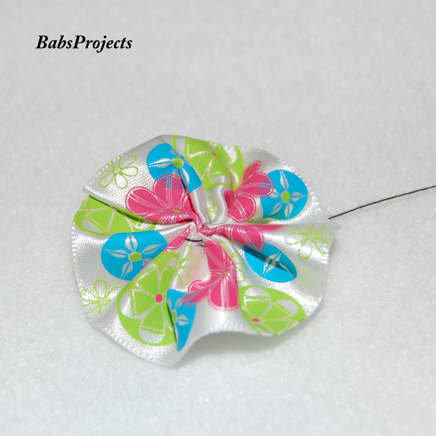 After a bit of manipulation and some more pulling, I formed it into a floral shape. With the same thread I sewed couple of stitches in the center to secure it.