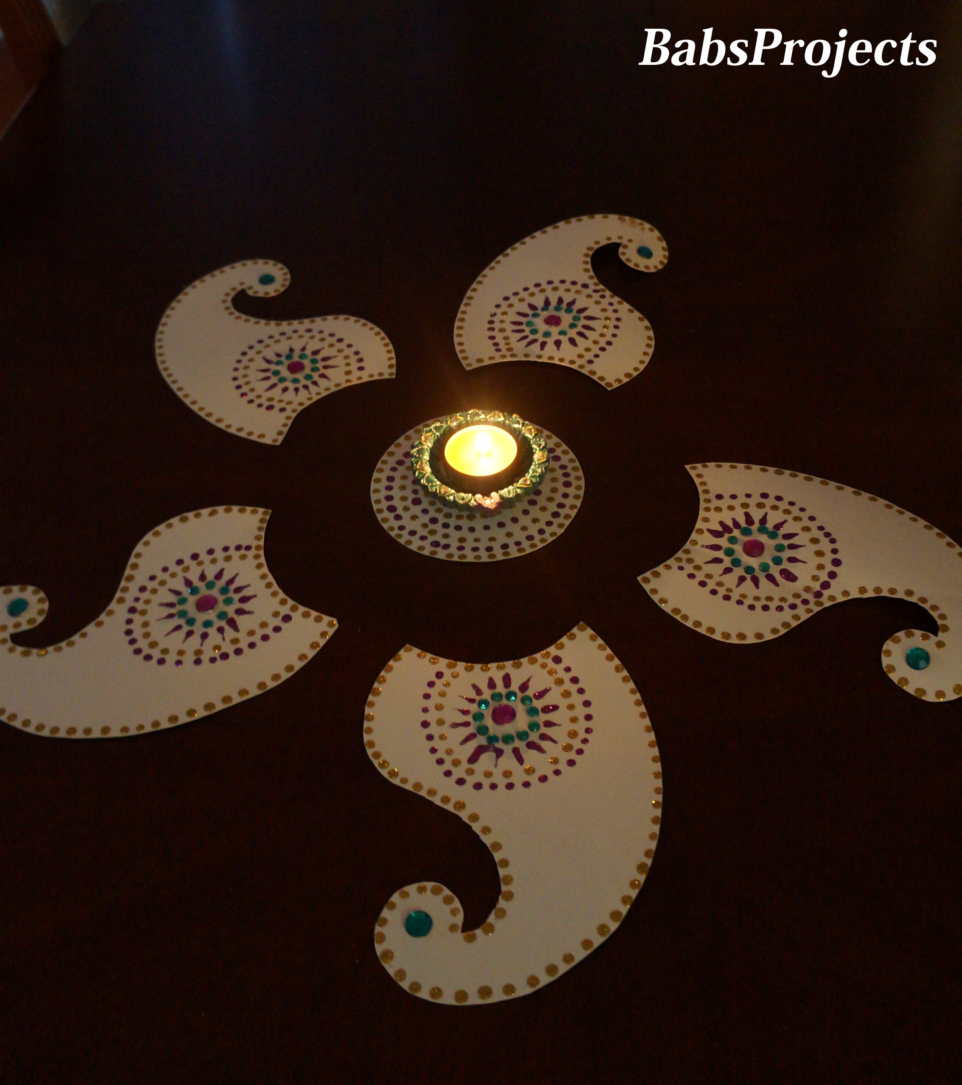 Today is the first day of Diwali (for those who want to learn more about Diwali click here). Diwali is one of the most important Hindu festivals. I have been busy preparing for this holiday. I have been shopping, cleaning and making tons of sweets and treats. This year for Diwali I decided to make Readymade Diwali Rangoli. It is a crafting project, which I had been playing in my mind for a long time.