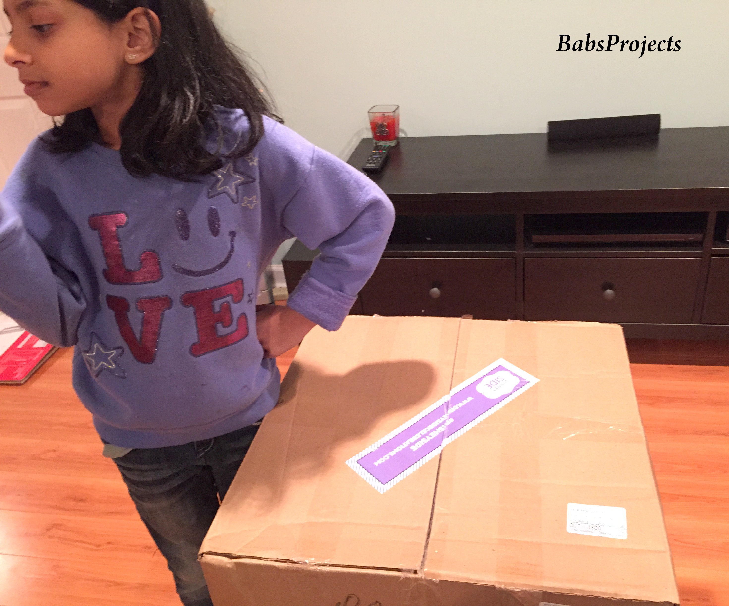 We were selected to host the Disney Side @Home Celebrations party. After waiting for what seemed like ages, we finally received our package yesterday. Both TEE and ‘S’ could hardly contain they excitement. Since it was night time and as our living room did not have a lot of light we decided to open our box in the basement.